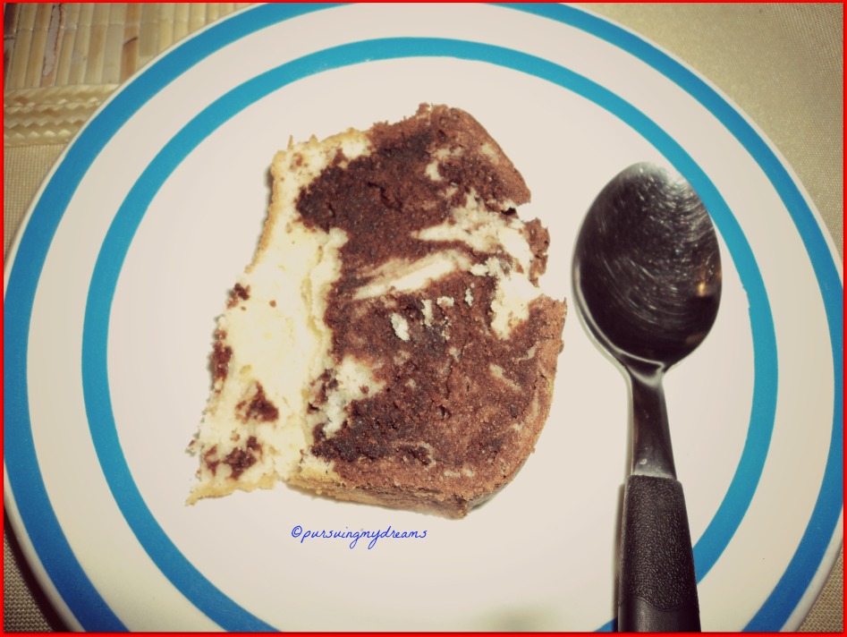 Saya barusan lihat foto bolunya, bukan bolu marmer pak. Sptnya enak banget tuh ada campuran kismisnya pula ;).