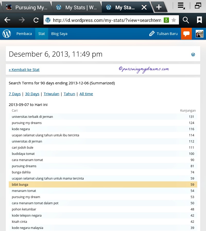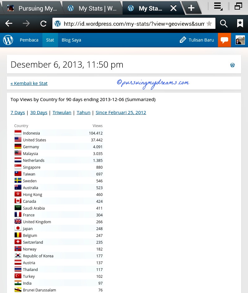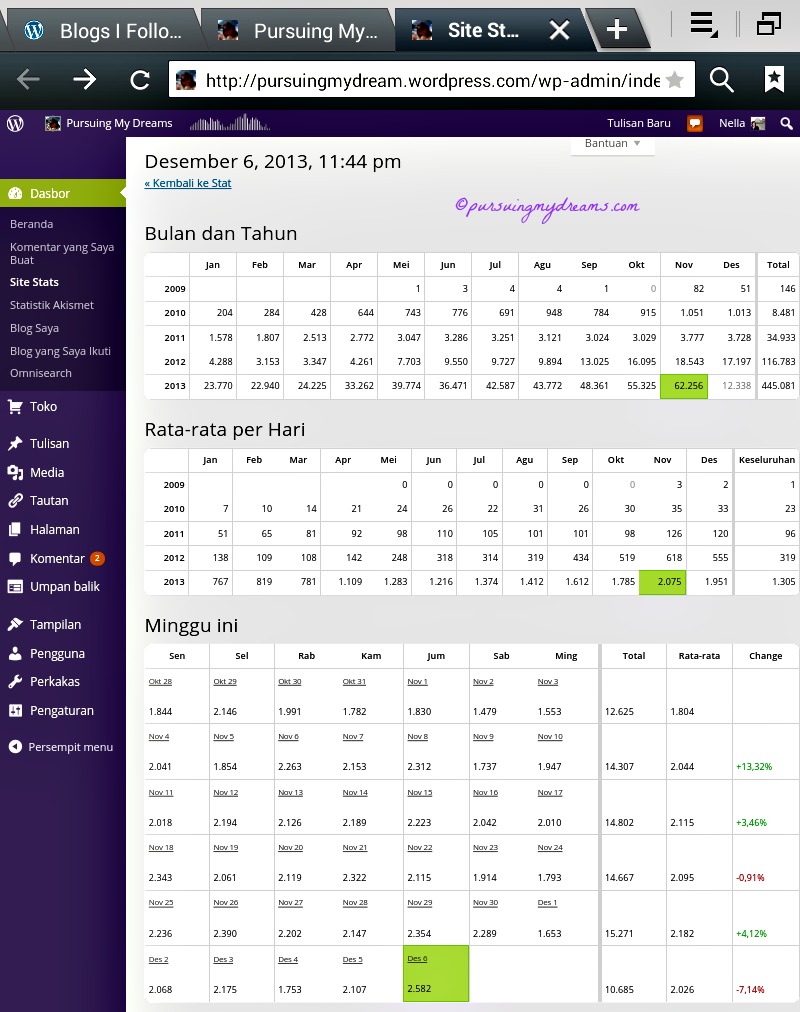 Pertengahan Februari 2013 lalu, saya memutuskan punya domain sendiri. Tetap menggunakan wordpress sebagai hostnya. Thanks God, sejak punya domain trafiknya naik 30%. Setiap hari sudah diatas 1000 an viewers.
