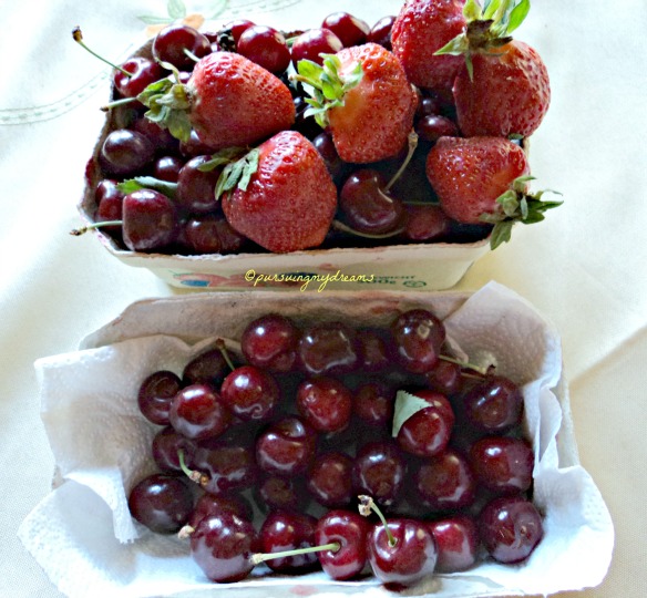 Oh ya hari Minggu pulang bertamu kami di kasih sekantong buah cherry dan stroberi. Cherrynya dari pohon di taman keluarga orang Turki yang kami kunjungi, sedangkan stroberinya sepertinya beli dari ladang stroberi deh.