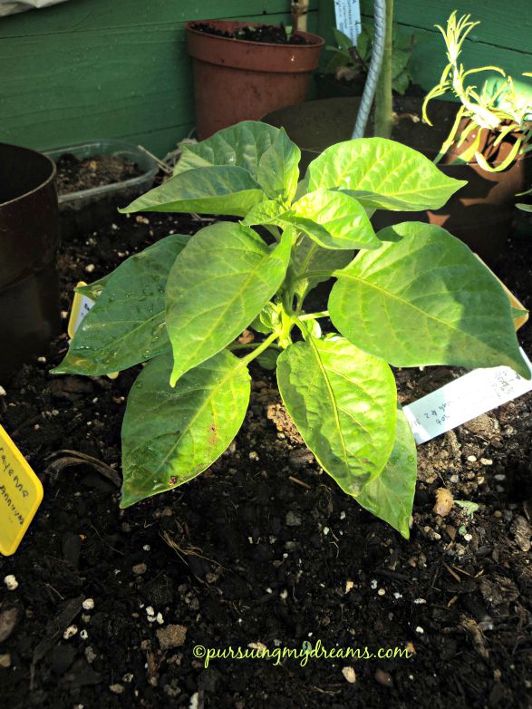Dikebun saya punya tanaman cabai. Yang sudah berbunga ada 2 tanaman, untuk habanero lebat daunnya tapi belum berbunga. Ada 3 lagi belum lama saya semai, masih kecil tanamannya.