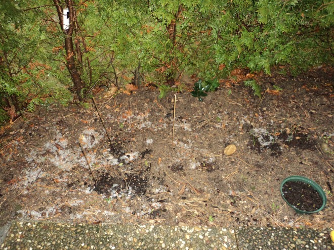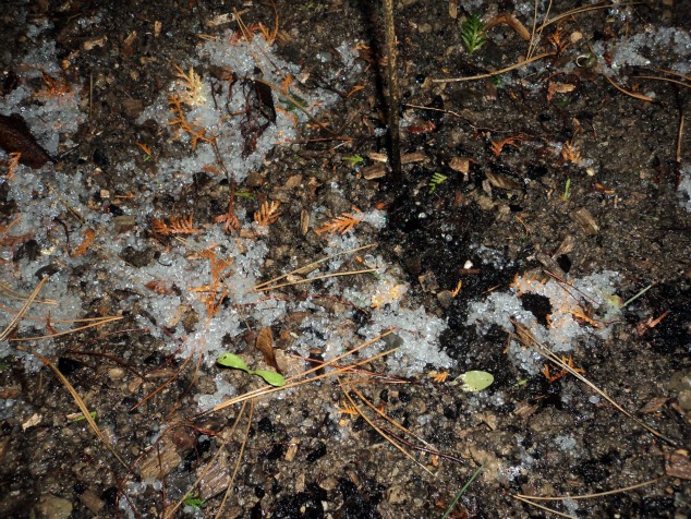 Jam 3 sore lewat 5 menit, sudah tidak terdengar lagi suara ribut-ribut karena angin dan hujan, saya coba naikkan rolling door jendela, supaya matahari menerangi dalam rumah. Eeiittss!!! Apa ya tuh di halaman depan, warna putih bening, bulat-bulat, ahhh masah sih sinterklas datang taburin berlian di taman saya? Ha-ha-ha (Hiperbola!):D.