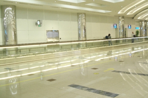 Megahnya Dubai International Airport. Setelah sekitar enam jam terbang terbang dari Jakarta, maka transitlah pesawat Emirates di bandara Internasional Dubai (Uni Emirate Arab). Kami mendarat pukul 06.30 waktu setempat dan akan berada di bandara ini sekitar 3,5 jam lalu berganti pesawat untuk penerbangan berikutnya. Jakarta dan Dubai beda 3 jam, dimana Dubai lebih lambat. Turun dari pesawat sudah ada dua bus besar yang menanti untuk mengantar kami ke lobby bandara.