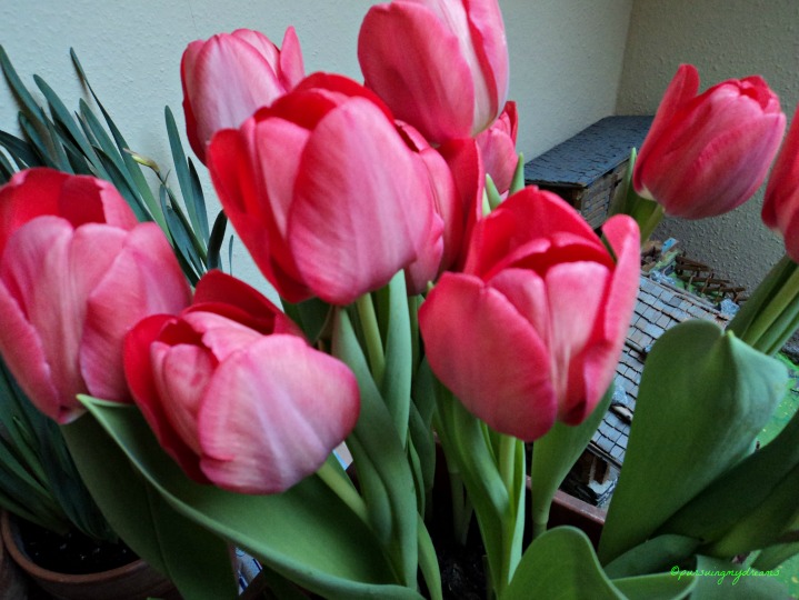 Setelah tulip tumbuh semakin besar, saya jaga jangan sampai kena suhu dingin yang ekstrim. Jadi kalau matahari bersinar cerah atau suhu diluar rumah sekitar 5 derajat saya keluarkan. Ada seminggu an selama bulan Januari potnya saya taruh diluar karena cuacanya bagus 5 hingga 10 derajat celcius hingga malam hari.