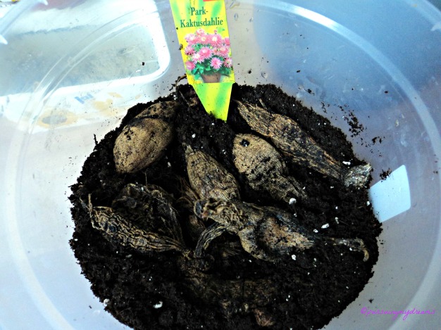 - Dahlia Park Princess umbinya dari tahun lalu, hiks 😥 begitu keluarkan dari gudang, ternyata banyak yang busuk. Ya ketika pindahan rumah pada November 2012, saya repot mengurus macam-macam, jadi umbi dahlia ini asal saya masukkan ke plastik berlubang, saya lupa kalau rimpangnya masih basah.