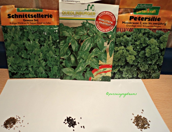 Selain salat, tanaman yang saya tanam dengan tehnik diatas antara lain: Lobak merah bentuk buahnya bulat merah, lalu tanam Seledri, daun Basil dan parsley. Di Jerman tanaman Seledri, daun Basil dan parsley tersebut disebut Küchenkräuter, semacam bumbu dapur atau herbal gitu deh, bisa buat campuran sup dan bumbu masak. Küchenkräuter ini jangan terkena matahari yang terik.