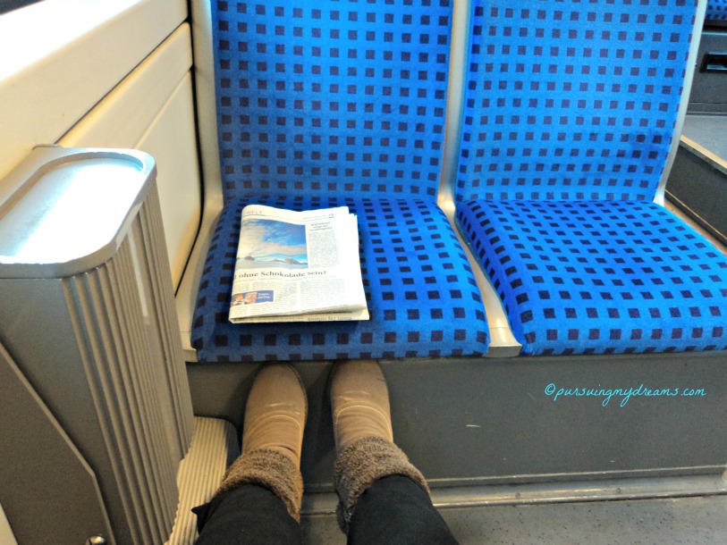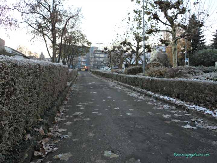Saya lihat termometer, nyali langsung ciut. Di luar suhunya minus 4,3. Saya berpikir mana lebih baik, „naik bus dari depan rumah, tapi harus berdingin ria di stasiun kereta selama 25 menit, atau jalan kaki ke stasiun dan cuma nunggu 2-3 menit sampai kereta datang?“. Frank sampai saya bangunin dan minta pendapatnya, dan dia bilang jalan kaki saja pelan-pelan.
