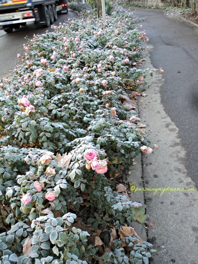 Turun dari kereta, saya masih harus berjalan kaki lagi sekitar 15 menit sampai di tempat tujuan. Dalam perjalanan saya potret bunga-bunga mawar yang masih terlihat keindahannya dan kekuatannya menghadapi udara dingin.