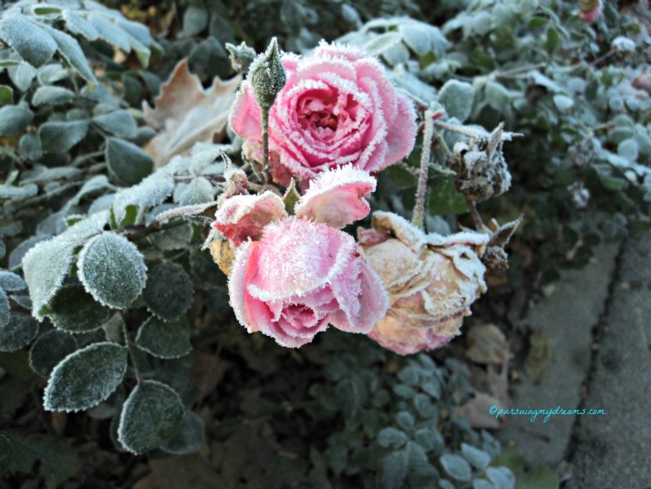 Eh itu foto mawar yang beku berlapis salju keren juga. Malah tambah indah rasanya. Mungkin karena aku belum pernah lihat mawar yang beku gitu jadi rasanya indah ya, Mbak 😀