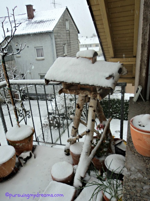 Balkon Belakang. Rumah Burung itu untuk taruh makanan buat burung liar, berhubung musim dinginya tidak parah jadi ga ada burung yg datang cari makan