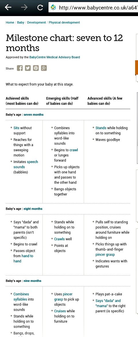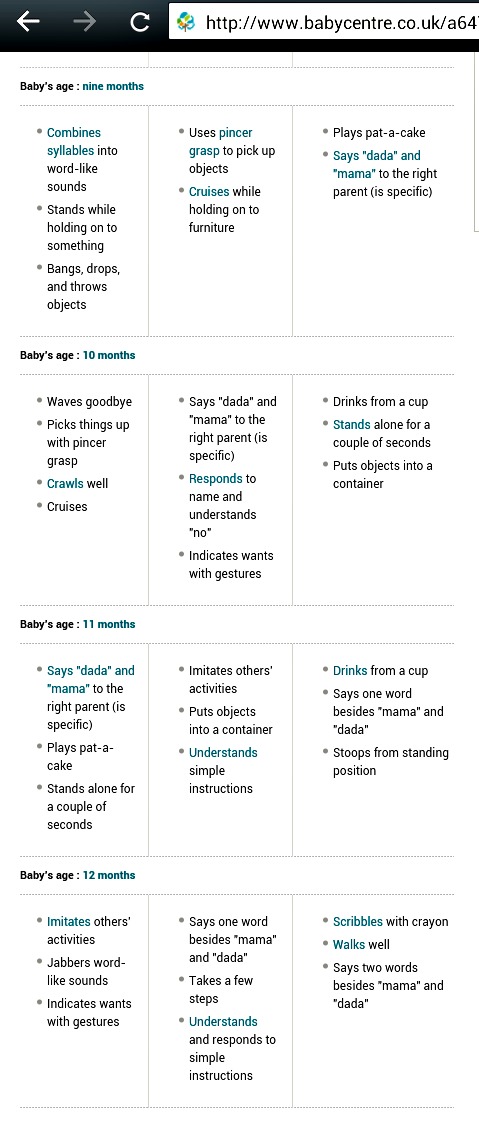 Tabel kemampuan bayi usia 9 hingga 12 bulan