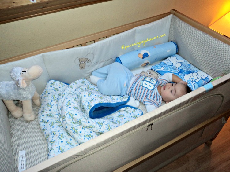 Mulai 9 November 2014 kalau malam Ben tidur ditempat tidurnya yang besar. Kalau siang masih taruh boks, supaya bisa saya dorong ke dapur, ruang tamu, kamar tidur atau ruangan lainnya. 10 Nov saya coba taruh Ben di tempat tidurnya, untuk tidur siang eh dia mauuu senang banget. Saya jadi bisa mengerjakan banyak kerjaan upik abu: mulai mengisap debu, mengepel, masak, makan, nyetrika dll.