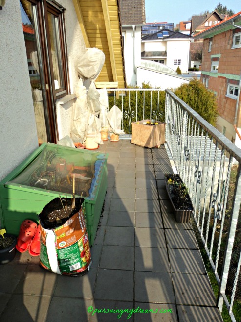 Balkon saya 3 bulan kemudian pada 31 Januari 2014 hampir jam 1 siang juga. Tarrraaa kosong melompong hahaha 😆 . Balkon depan juga sama kosong, jadi tidak perlu dipotret ya tidak ada bagus-bagusnya.