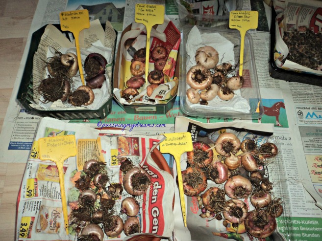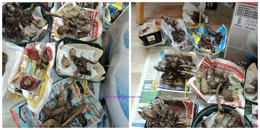 Umbi-umbi bunga seperti Gladiol dan Dahlia harus ditaruh diatas koran, karena kalau diatas plastik akan busuk. Pakai koran lebih baik karena bisa menyerap lembab.