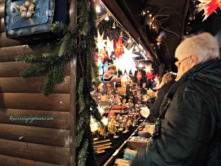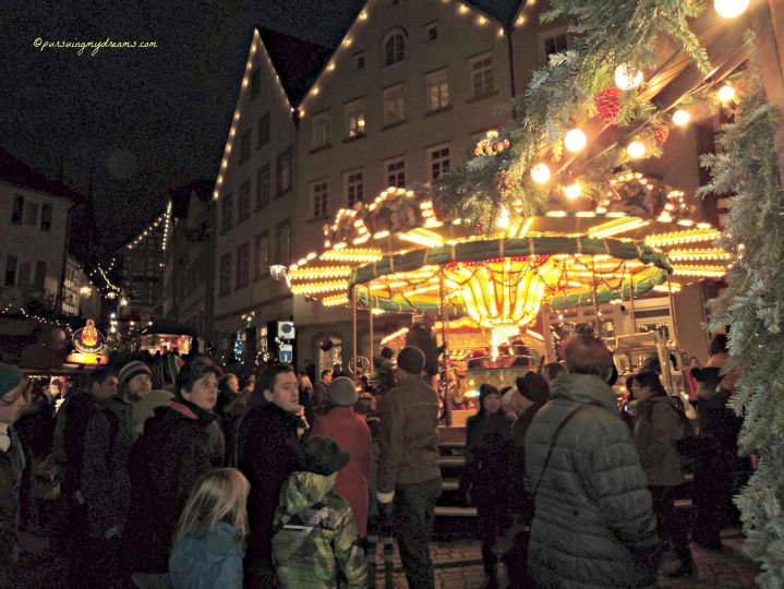 Stan-stan di pasar Natal berbentuk kios kecil yang dibangun dari kayu. Selain makanan dan minuman, di stan-stan pasar malam tersebut juga dijual mainan, kerajinan tangan, dan hiasan Natal. Ada pula panggung hiburan, paduan suara dan dansa. Komidi putar dan kincir merupakan permainan di pasar Natal yang digemari anak-anak (wikipedia). Di Bad Wimpfen hanya ada komidi putar, ramai melulu, banyak anak-anak merengek ke orangtuanya untuk naik berulang kali.