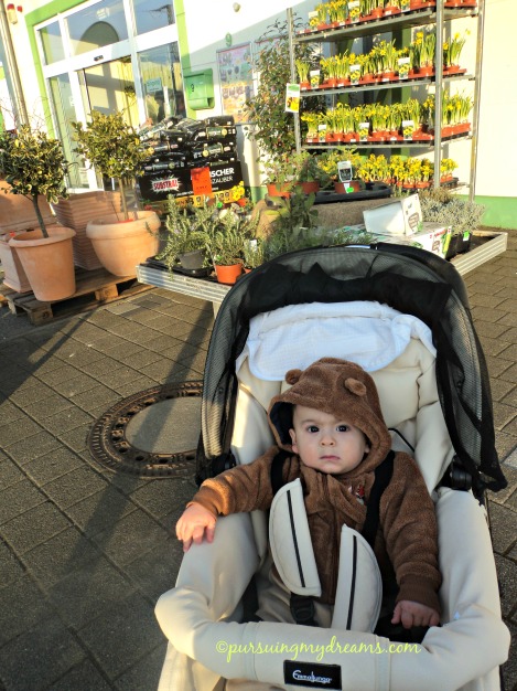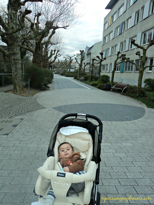 Sama babenya si Ben selalu digendong depan, saya tidak sanggup gendong lama berat bo! lebih baik saya dorong stroler saja 😛 . Kami punya karcis bus, namun kalau cuaca cerah sekali kami lebih sering jalan kaki pulang kerumah, sambil menikmati pemandangan kota, sambil Benjamin boleh pegang tanaman dihalaman rumah orang. Kalau di rumah kami Ben tidak boleh pegang tanaman lama-lama. Bukan hanya pegang tapi ditarik daun dan bunganya, emaknya Ben kan jadi sedih kalau tanamannya rusak hehe.