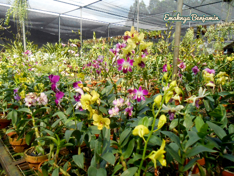 - Aneka anggrek dendrobium banyak sekali warna dan ukurannya. Ada dendro yang bunganya warna hijau, putih, warna kecoklatan atau nyaris gelap lalu ada denrobium bercorak. Paling banyak anggrek dendrobium yang sedang berbunga.