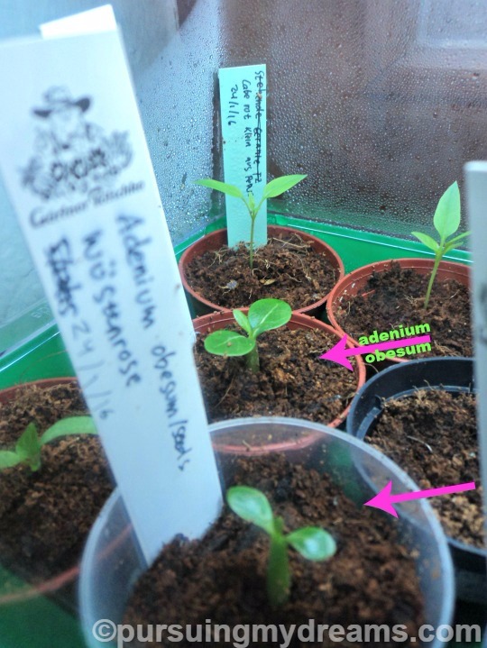 • Adenium akhirnya numbuh horeee. Nanam pertama kali tidak tumbuh. Yang berhasil ini metan (media tanam) pakai cocopeat. Adenium sprout dalam waktu 7 hari. Posisi bibitnya harus dalam posisi tegak/vertikal ya. Yang gagal sebelumnya saya salah naruh posisi bibitnya.