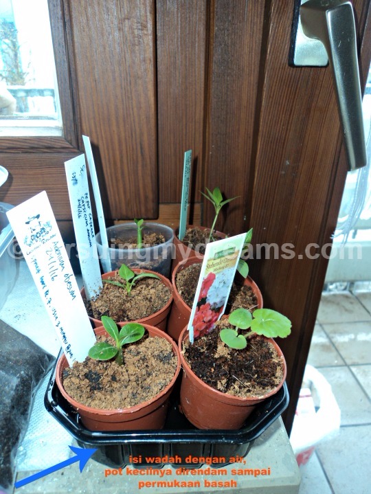 Saya tidak siram dari atas karena benih yang baru numbuh ini rapuh sekali, kuatirnya patah kalau disiram dari atas.