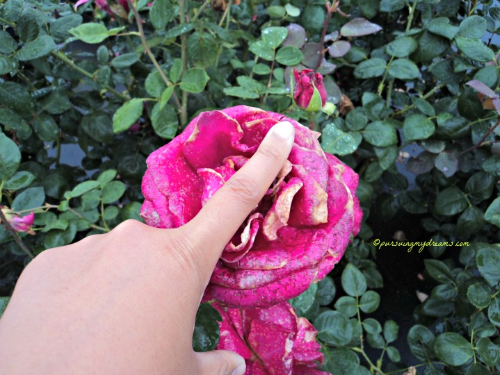 Sayang sekali keindahan mawar-mawarnya sedikit terganggu setelah guyuran hujan deras 🙄 .