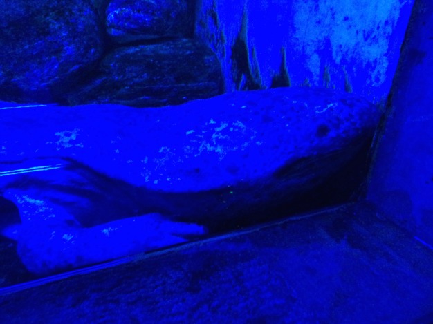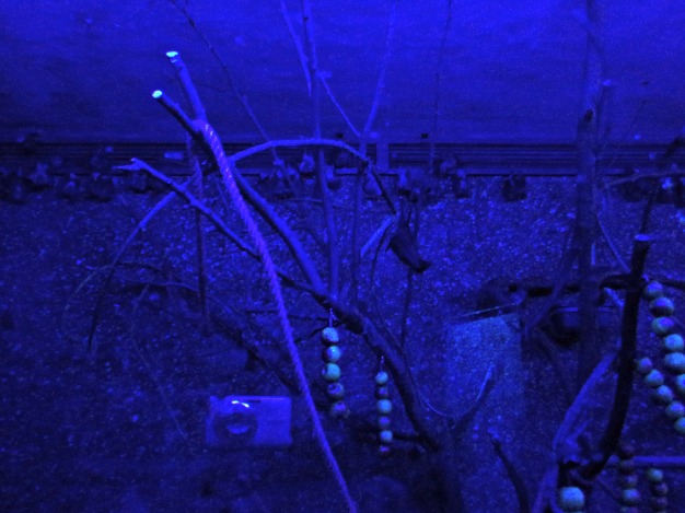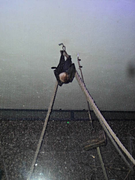Berhubung kalong hidup di tempat gelap, makanya ruangan ini dikasih lampu biru