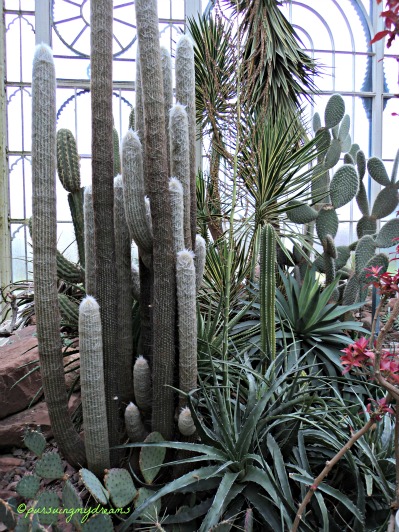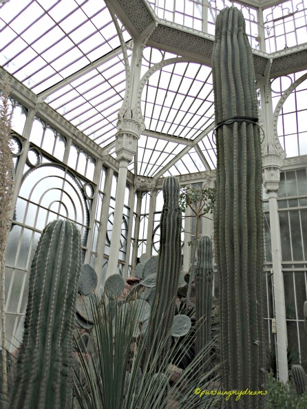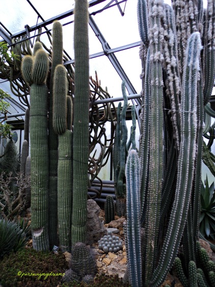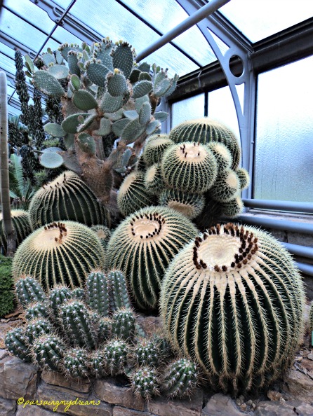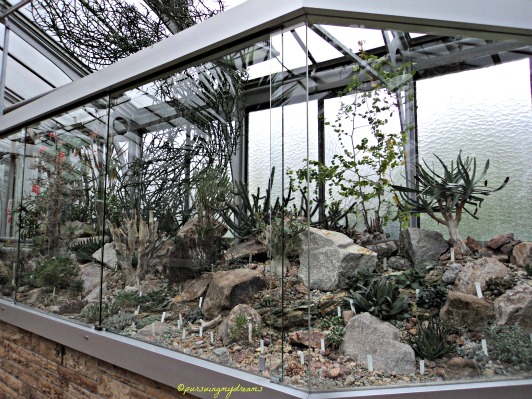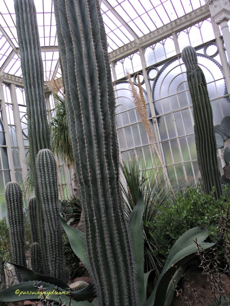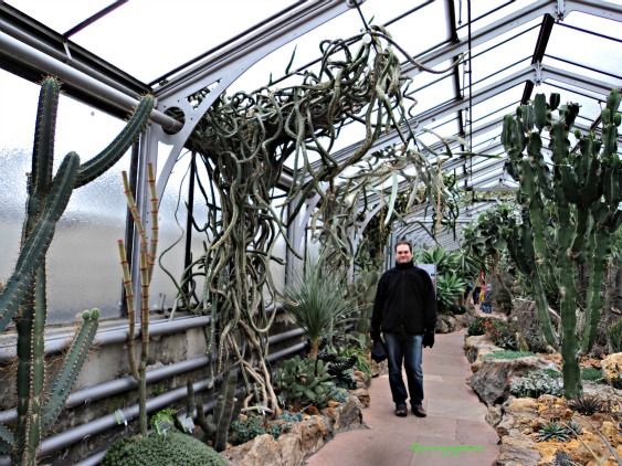 Pertama kali kami memasuki ruangan tempat koleksi kaktus, sekaligus menghangatkan badan karena di luar dingin lagi dan gerimis, suhunya hari itu 10 derajat C.
