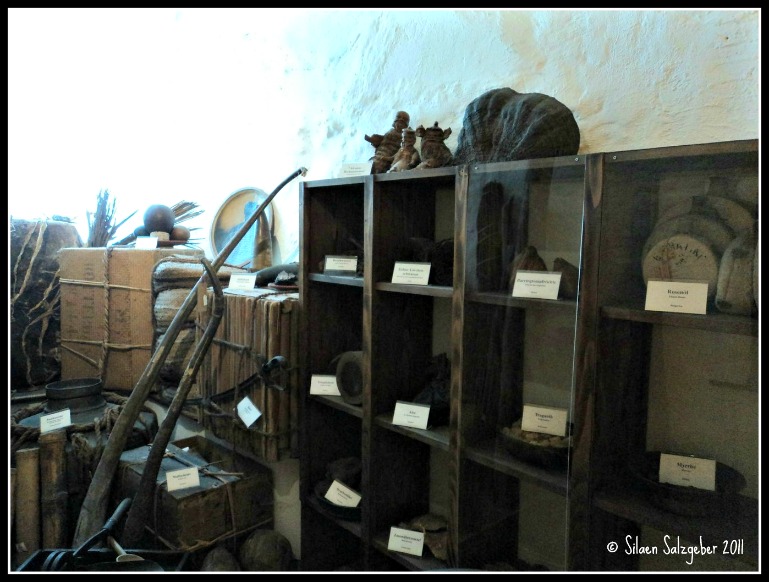 Pertama bahan baku obat dalam jumlah besar dimasukkan dan disimpan disini. Sebagai gudang untuk menyimpan bahan herbal dan bahan-bahan padat lainnya, ruangan dipenuhi dengan bau harum rempah-rempah segar dan kering, yang kebanyakan dibuat pada abad ke-18.