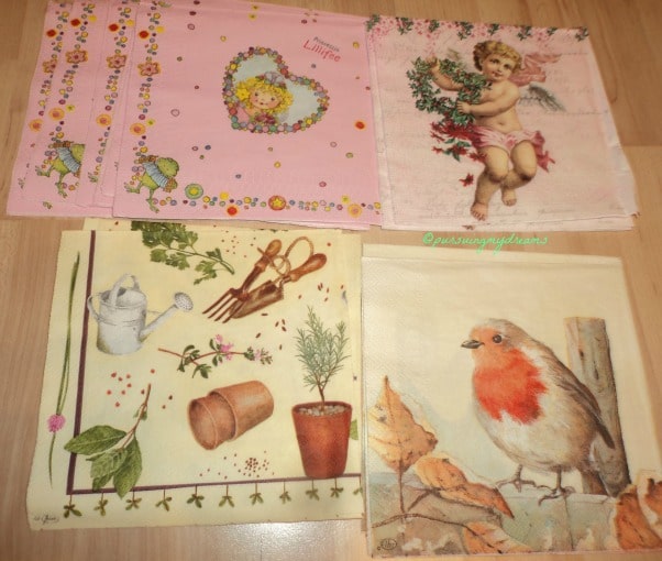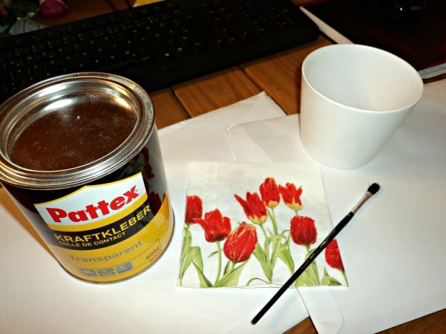 2.Ukuran serbet tissunya saya sesuaikan dengan bidang potnya, ada yang saya potong empat ada juga yang cukup di potong dua. Pokoknya disesuaikan supaya bisa menempel dengan baik. Kalau serbetnya terlalu panjang bisa dipotong.