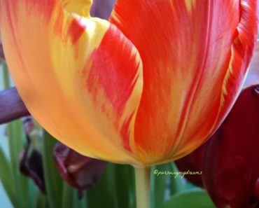 Cantik ya perpaduan warnanya. Namanya Apeldoorn tulip, termasuk triump tulip.